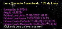 Abajo a la izquierda tenemos la fase de la Luna actual, al pasar el mouse por la imagen aparecerá una nueva ventana donde encontraremos más información actualizada en tiempo real.