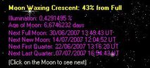 Below to the left we have the current phase of the Moon, moving the mouse by the image is displayed a new window where you can find more updated information in real time.