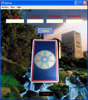 Just as the card of the destiny would correspond to the date of birth, the card of the personality it would be of our full name of birth. I have put four text box to put our name or the person who want it, if someone does not have second name then you must leave in blanc that box (even we can prove with a nick or nickname but is not advisable):